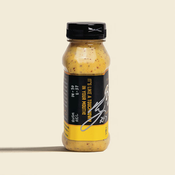My 2025 Season Week 12 Game Bottle, complete with my stats, my autograph, and the date. Only 1 bottle available. Buy this 1-of-1 mustard-based collector’s item today!
